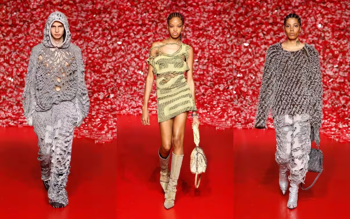 В начале этого года большинство из нас поняли: стиль Y2K останется надолго. Будь то юбки-макси, сумки-багеты или сетчатые изделия - мода полна отсылок к нулевым годам. Также в центре внимания - крутые джинсы, в том числе и рваные, которые уже сыграли важную роль для Diesel, в частности, в сезоне осень-зима 2023/2024. Поэтому неудивительно, что на показе сезона весна-лето 2024 в Милане марка не обошлась без дистресс-денима.